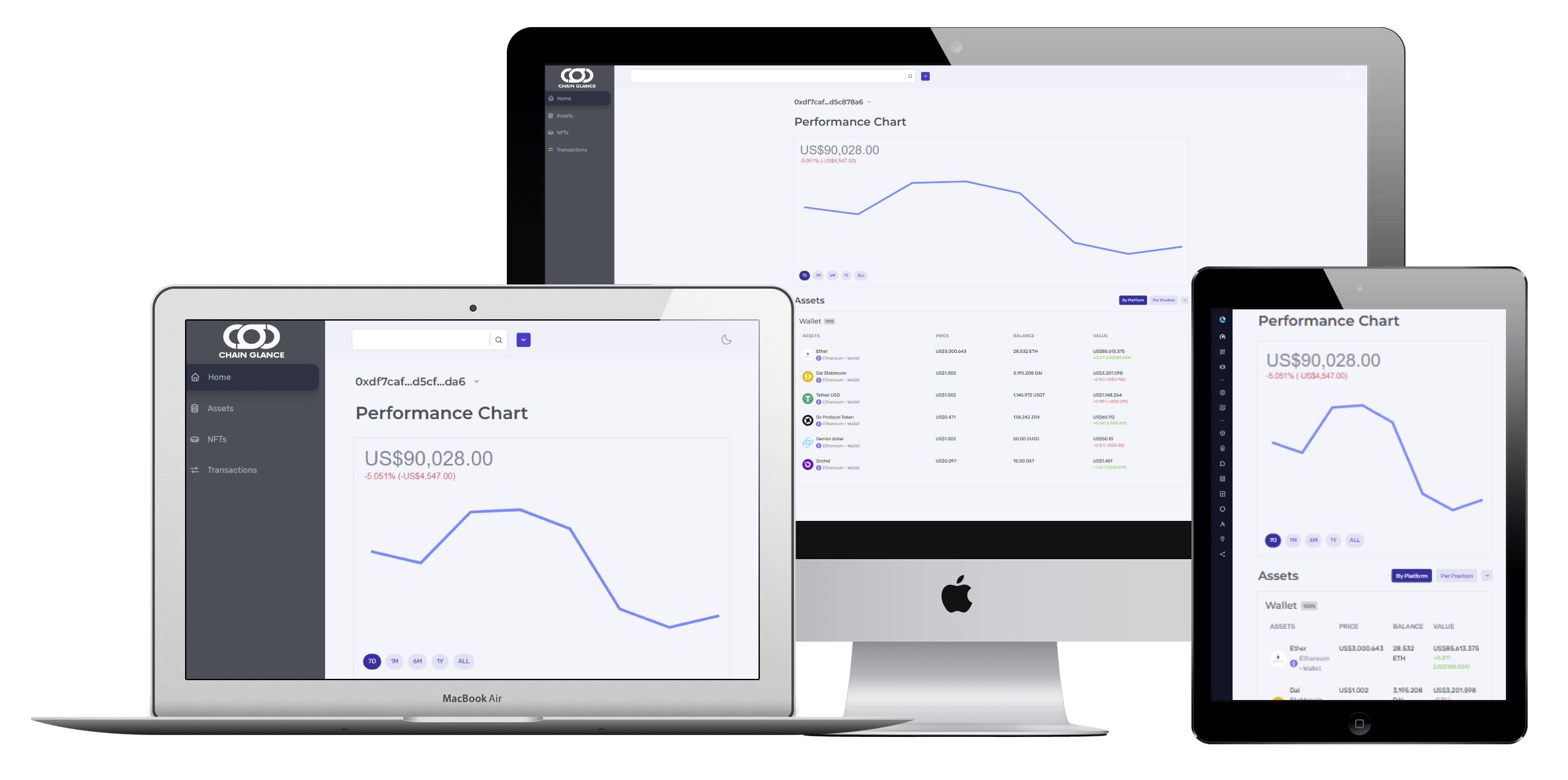 Track your assets across Ethereum, Polygon, BSC, and beyond.